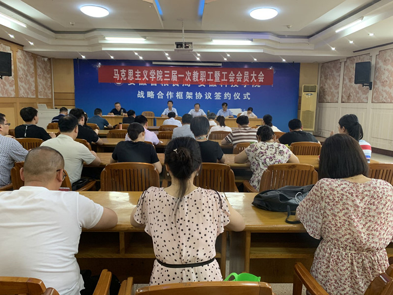 7月7日下午,马克思主义学院在原图书馆二楼招生就业大厅召开三届一次教职工暨工会会员大会,学院党政领导和全体教职工参加会议。会议由党总支书记杨仕勇主持。