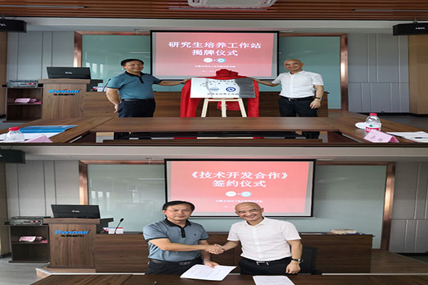 在公司交流期间,陈丰和傅正兵共同为“安徽永成电子机械技术有限公司安徽科技学院研究生培养工作站”揭牌,并签订了“全自动包装机械结构轻量化技术研究 ”技术开发合同。陈丰一行还看望慰问了我校在永成公司的2011届毕业生代表刘玲、2021届毕业生张本祎、丁彩乐,征求他们对学校人才培养工作的意见和建议,叮嘱他们强化责任心和敬畏心,勤奋务实,开拓创新,在服务企业进步成长的同时,实现个人的价值追求和美好生活。(特约通讯员:王飞 审核:张严政 编辑:李刚)
