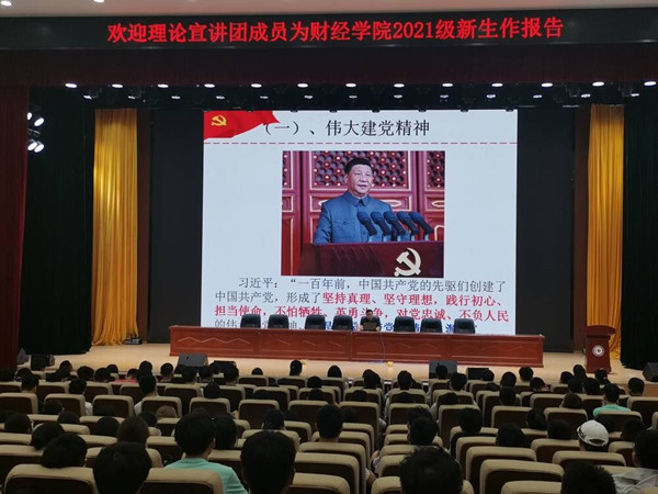 为加强新生理想信念教育,激发爱党爱国热情,9月17日上午,财经学院邀请校辅导员理论宣讲团成员、生命与健康科学学院党政办公室主任王传林为2021级新生作以“传承红色基因,铸就青春底色”为主题的理论宣讲。院党委副书记耿广汉、全体新生辅导员及2021级新生全程参与,聆听了讲座。讲座由院团委书记薛枫主持。