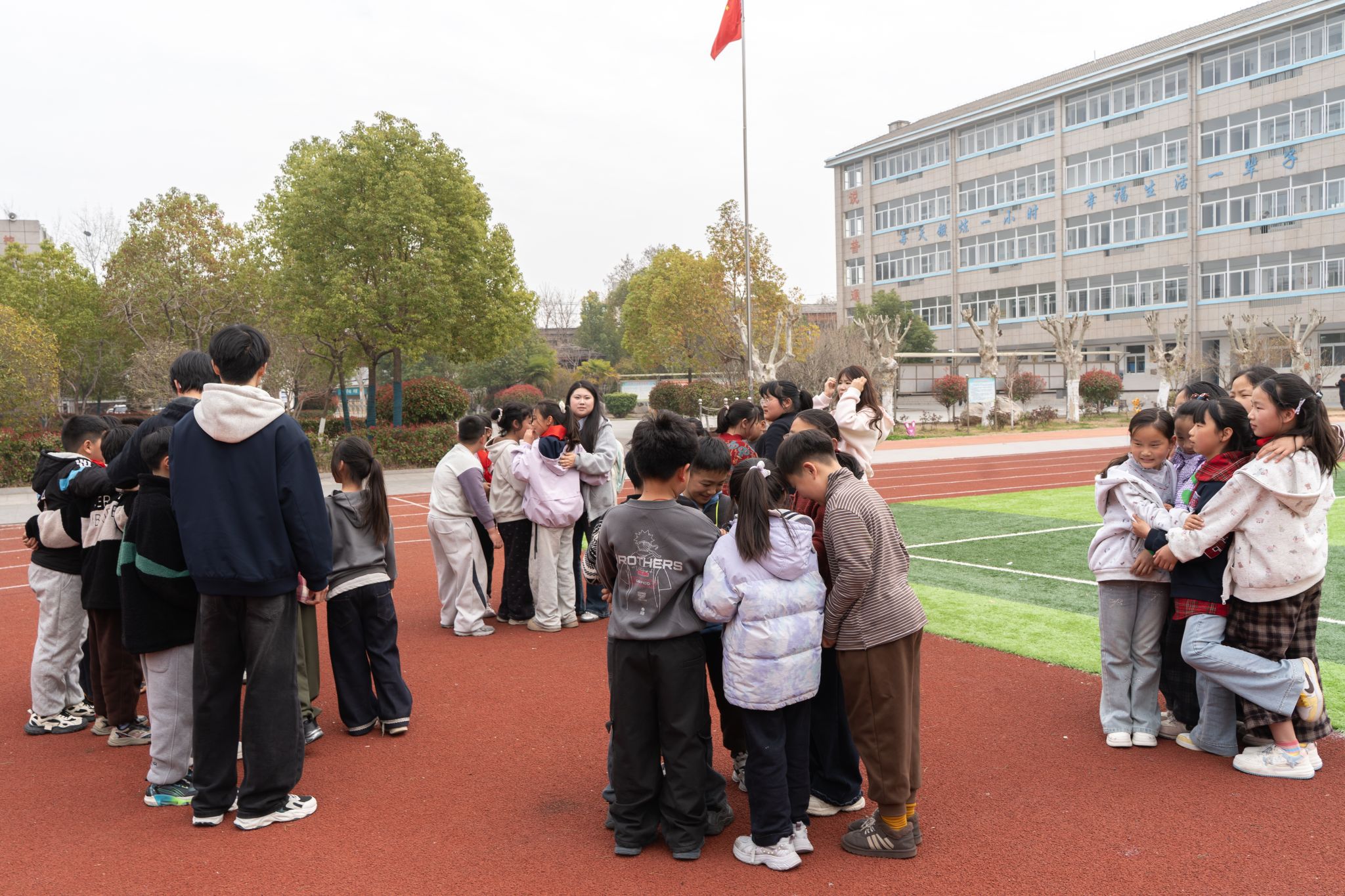 随后,支教队员带领孩子们前往操场,开展了数字抱团、沙包投掷、丢手绢等一系列趣味十足的户外活动。数字抱团环节中,孩子们紧盯指令、迅速组队,在默契配合中提升了专注力与协作能力;沙包游戏里,孩子们奔跑闪躲、欢声笑语,在运动中释放学习与生活的压力,传递着青春活力;丢手绢环节中,大家相互追逐、彼此包容,在轻松的氛围中学会友好互动、克服胆怯心理,收获了友谊与快乐。参与活动的同学纷纷表示,这次活动不仅让自己收获了满满的欢乐,更学会了如何表达情绪、与同伴友好相处。