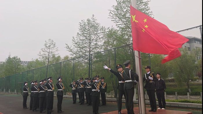 红旗漫卷,信仰在晨光中升腾。伴随着雄壮的《义勇军进行曲》响起,五星红旗在晨风中冉冉升起。全场肃立,行注目礼。这一刻,时间仿佛凝固,唯有红旗猎猎。师生们的目光紧紧追随着那一抹鲜艳的中国红,在庄严肃穆的氛围中,深切感受伟大祖国的荣光,爱国主义情怀在心中悄然生根、发芽。