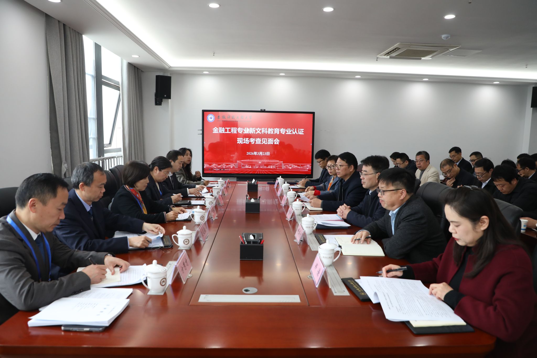 3月23日上午,现场考查见面会在龙湖校区综合信息中心西附楼317室召开。认证专家组全体成员,党委副书记、院长李升和,党委委员、副院长赵伟峰出席见面会。会议由王品玲和赵伟峰共同主持。