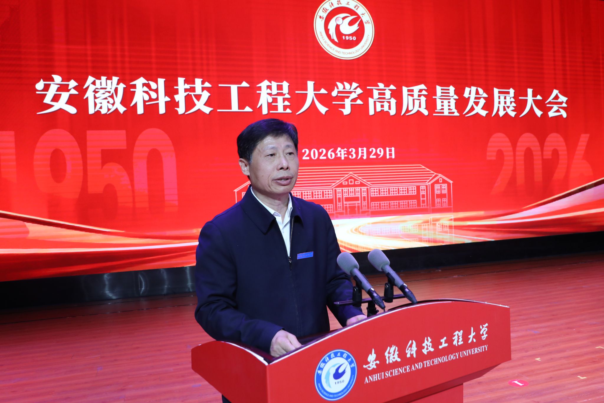 校党委书记时伟在致辞中向长期以来关心支持学校发展的各级领导、社会各界朋友,表示衷心的感谢。向为学校耕耘奉献的历任领导、离退休老同志,向全体师生和广大校友,致以亲切的慰问和崇高的敬意。他表示,学校更名是发展史上的华丽跨越,是安科人接续奋斗的重大成果,更是奋进新征程的全新起点。站在新起点,学校将感恩奋进,锚定现代化全国一流应用型大学目标,深化改革、锐意进取,奋力书写高质量发展新篇章,为打造“三地一区”、谱写中国式现代化安徽篇章贡献更大的安科力量。