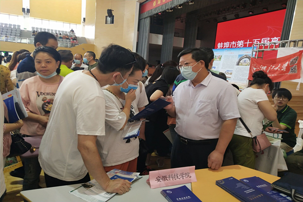 在蚌埠第十五届高校招生咨询会的现场,李升和还与学校负责宣传的老师一起,耐心为家长和考生介绍特色专业、招生计划、录取批次和报考注意事项,积极鼓励考生和家长填报我校志愿。他慰问并勉励招生宣传人员要不畏辛劳,结合每位考生具体情况解读好、宣传好学校的招生政策和专业特色,提供热情周到的报考指导服务,为学校争取更多优质生源。(特约通讯员:朱中军 审核:杜小明)