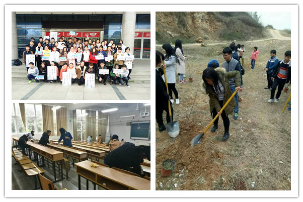 围绕这一主题,学院各班级积极行动,纷纷开展了形式多样的校内校外实践活动。有些班级拿着扫帚、垃圾袋、夹子等清洁工具,深入学校教室、宿舍楼、后山、绿化林、草坪等各处进行环境卫生清理,使校园面貌更加整洁、美丽;有的班级组织了后山植树活动;有的班级组织同学们在教学楼、图书馆、食堂、宿舍楼等地张贴诚信文明宣传标语;有的班级组织同学们观看视频《雷锋》,讲述雷锋故事,引导广大团员正确理解雷锋精神内涵,培养大学生正直善良、诚实守信、富有爱心、承担责任的道德品质;有的班级组织同学到长安街和凤凰路的交叉路口的人行道处帮忙维持交通秩序,文明有序过马路;还有的班级到敬老院,陪老人聊天,替老人打扫卫生,整理内务,做一些力所能及的事情。