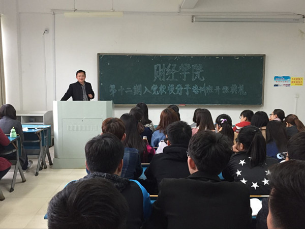 4月5日下午,财经学院在新知楼A109教室举行第十二期入党积极分子培训班开班典礼。财经学院党总支副书记、分党校副校长张传德及本期培训班63名学员参加了开班典礼,典礼由学院党总支秘书许欣主持。