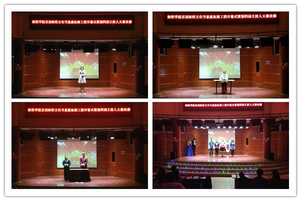 启动仪式结束后,结合素质拓展工程活动安排,举办了财经学院第四届主持人大赛。校箐英主持社会长连静雯,校广播台台长郑磊,人文学院学生会主席田月月,食品药品学院学生会主席刘源应邀担任本次比赛的嘉宾评委。