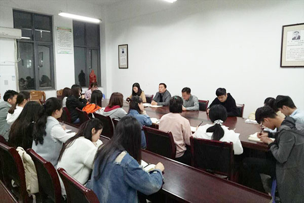 4月14日晚七点,财经学院社团联合会在学院会议室召开学生干部工作培训会议。学院党总支副书记张传德、专职辅导员才治军、社联副部及协会副会以上学生干部参加会议。会议由才治军主持。