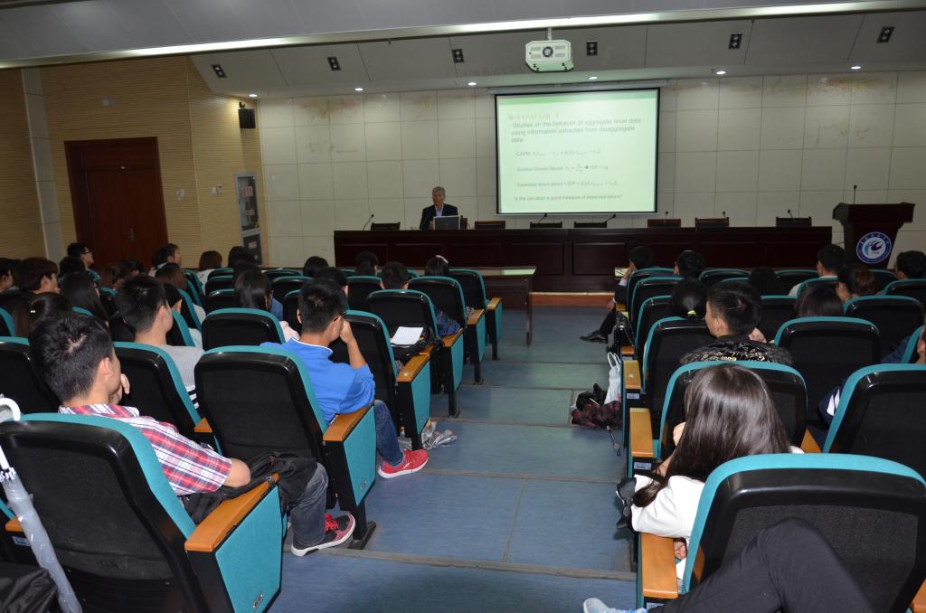 为浓厚学术氛围,了解经济学科世界前沿研究,加强学院中外学术交流,丰富财经学院首届财经大讲堂内容,5月8日,应财经学院邀请,美国佛罗里达国际大学终身教授、奈特-雷德研究员蒋晓泉先生,来校为师生做了题为《Cross-sectional PEG Ratios, Market Equity Premium, and Macroeconomic Activity》的学术报告,报告由财经学院副院长余吉祥主持,财经学院部分教师及金融工程和国际经济与贸易专业部分学生参加了报告会。