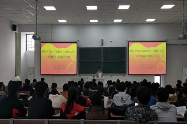 11月16日中午,财经学院在致知楼C111教室召开2017级新生“诚信•文明”主题教育活动动员大会。新生班班主任、全体学生干部参加会议。会议由辅导员老师张俊主持。