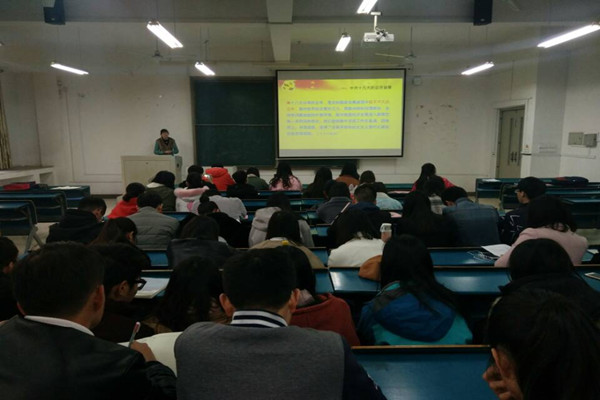 11月22日下午,财经学院在新知楼B302教室开展了中共十九大精神解读主题团课活动。各班级班长、团支书、宣传委员及分团委学生委员参加了主题团课。团课由院分团委书记薛枫主讲。