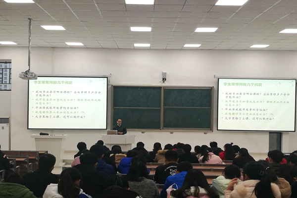 王旭东就新生普遍关注的专业课程学习、毕业资格条件、学士学位授予条件、考试管理、大学生创新创业、学科竞赛等问题进行了详细讲解,鼓励学生干部在班级工作中发挥好宣传和模范带头作用,带领班级同学明确大学学习目标,积极参加大学生创新创业活动。