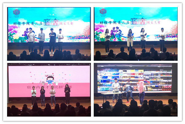 经过初赛的选拔,共有九间宿舍进入了决赛。决赛分为宿舍风采PPT讲演和才艺展示两个环节。PPT展示中,各宿舍从宿舍制度建设、宿舍文化、学风建设、所获荣誉、日常活动等方面进行讲解,展示了各自的特色和风采。才艺展示环节中,山鸣谷应的合唱,热烈奔放的拉丁舞,可爱灵活的手语舞,风趣幽默的小品等精彩表演赢得了现场观众的赞叹。