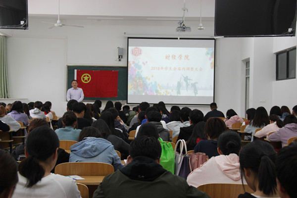 10月20日下午,财经学院在致知楼A108召开学生会届内调整大会暨学生干部培训会。学院党总支副书记张传德出席会议。院学生会全体成员参加了会议。会议由分团委书记、学生会秘书长薛枫主持。