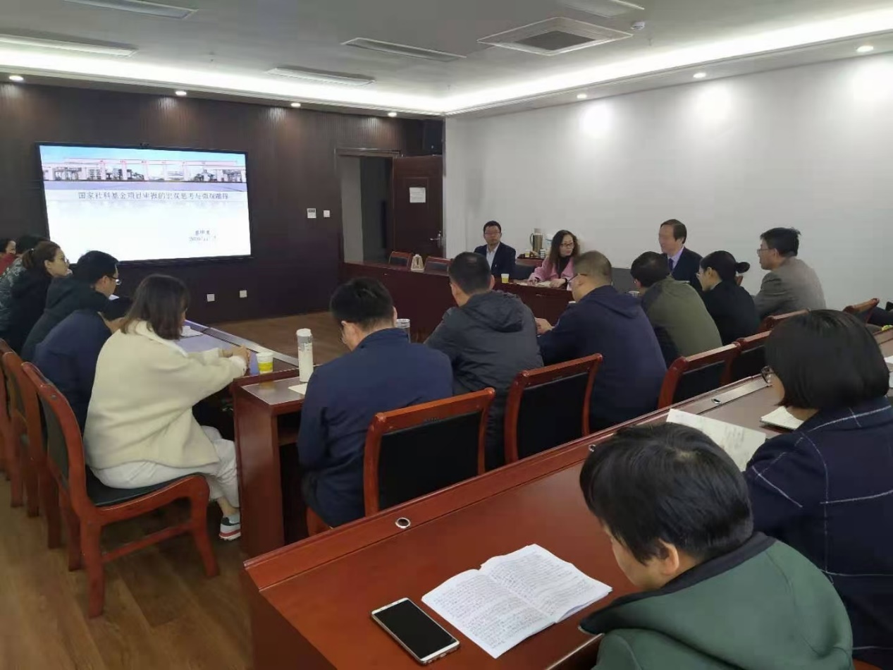 会上,盛明泉教授分别从宏观和微观的角度,详细介绍了国家社科基金项目申报的流程和评审程序,强调科研团队必须形成核力、坚持正确思政方向,准确把握时事政策以及社科研究热点,错位跨界选题,精雕细琢申报书,反复研讨论证,提交有竞争力的申报书。科研团队要制度化建设,注重夯实前期学术积累,耐住寂寞深根细挖,循序渐进厚积薄发,最终淘得学术金子。