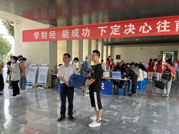 财经学院迎新报到之六:“学霸”萌新乐收校领导慰问大礼包