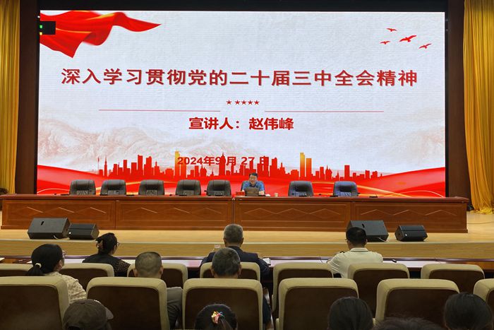 赵伟峰围绕深刻理解党的二十届三中全会的重大意义、深入学习领会习近平总书记在党的二十届三中全会上的重要讲话精神、准确把握进一步全面深化改革的重要性与必要性和需要把握的重大原则与重大问题、全面贯彻党的二十届三中全会精神等四方面,进行系统阐述和解读。他指出,党的二十届三中全会是我们党在关键时期召开的一次十分重要的会议,下一步要结合学校事业改革发展实际,全力以赴抓好全会精神的贯彻落实,以钉钉子精神推动学校事业改革发展取得新成效。(特约通讯员:张俊 摄影:张俊 审核:杜小明)