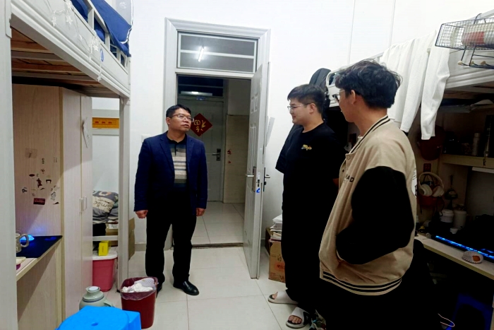 杜小明一行对学生的宿舍环境进行了细致的检查,查看了宿舍的卫生状况、安全设施以及生活设施等,对发现的问题及时提出了整改意见。同时,与学生展开亲切交谈,了解学生的学习、生活情况,以及存在的困难和需求。在交谈中,杜小明鼓励大家要保持良好的心态,积极面对学习和生活中的挑战,着重叮嘱学生要注意宿舍安全,遵守学校规章制度,共同营造一个和谐、安全、整洁的宿舍环境。