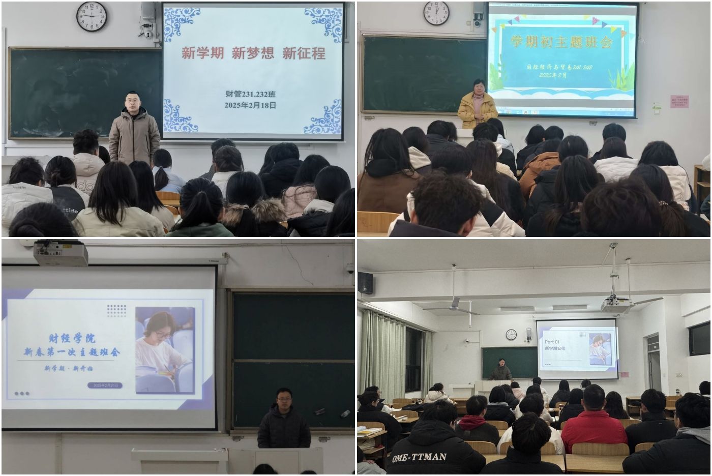 为引导学生迅速适应新学期节奏,明确学业目标,营造奋发向上的学习氛围,2月16日-21日,财经学院以“新学期 新梦想 新征程”为主题,组织各班级召开新学期第一次班会。