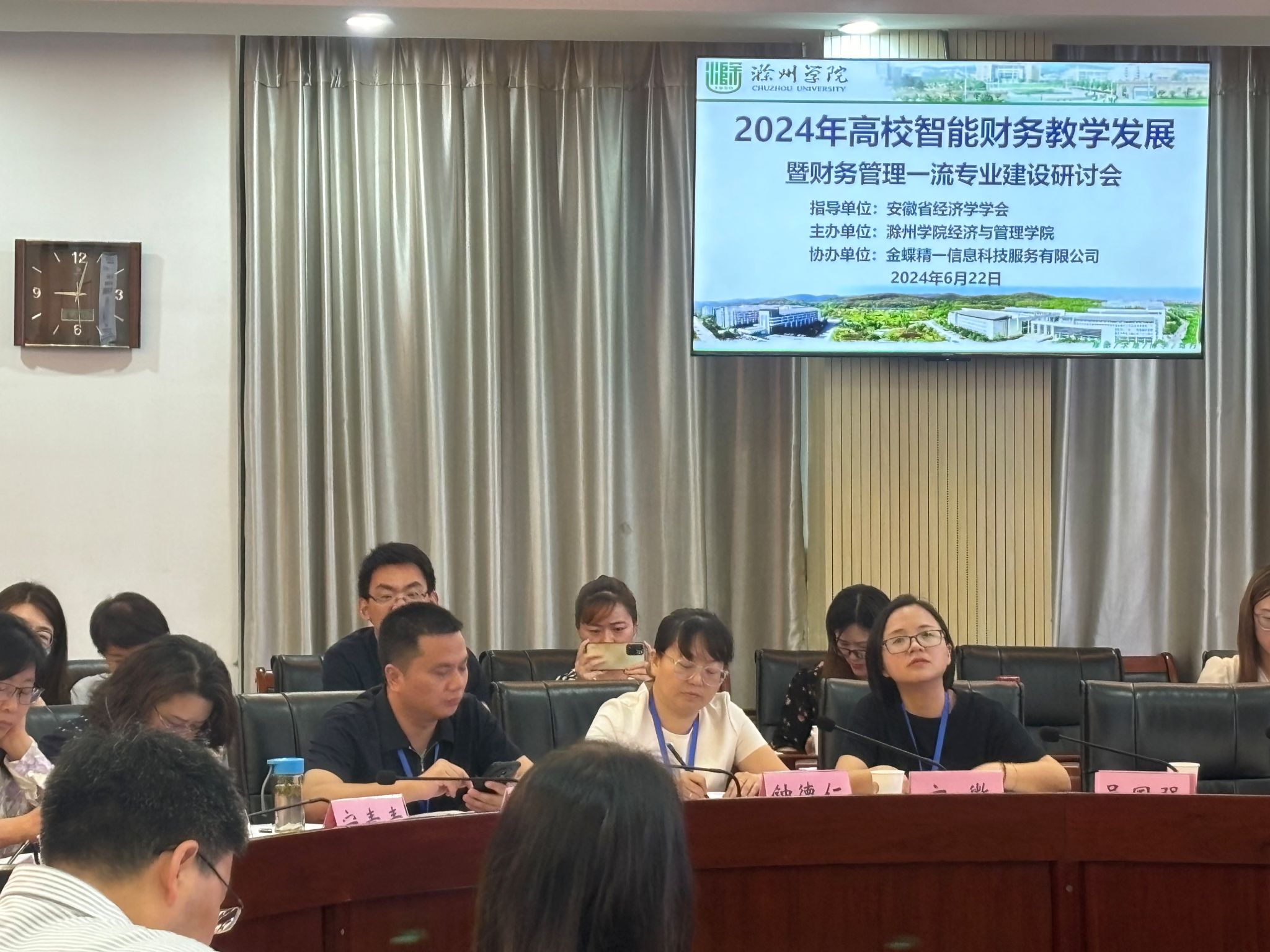 2024年6月21日至23日,2024年高校智能财务教学发展暨财务管理一流专业建设研讨会在滁州学院召开,会议由安徽省经济学会指导,滁州学院经济与管理学院主办,金蝶精一信息科技服务有限公司协办。受主办方邀请,安徽科技学院财经学院教师钟德仁、王佳、贺清云参加了此次研讨会。同时参会的还有来自安徽师范大学、安徽财经大学、安徽科技学院、皖西学院、蚌埠学院等十余所近一百名教师。