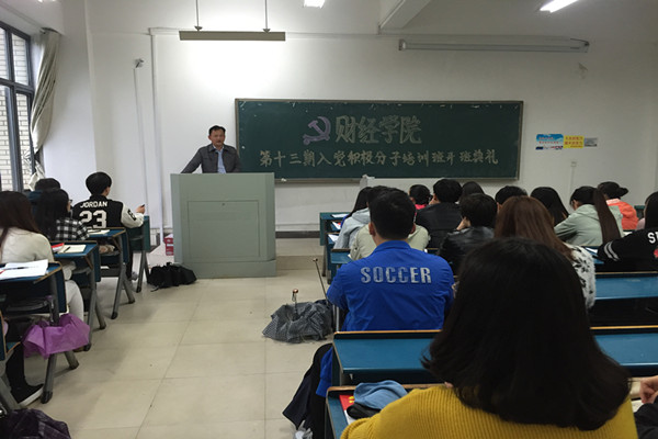 10月11日下午,财经学院在新知楼A109教室举行第十三期入党积极分子培训班开班典礼。财经学院党总支副书记、分党校副校长张传德及本期培训班56名学员参加了开班典礼,典礼由学院党总支秘书许欣主持。