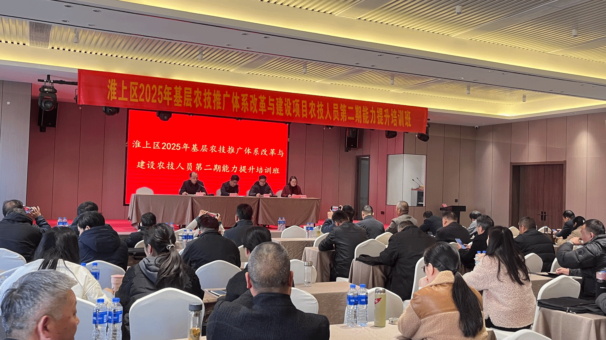 为进一步培育壮大蚌埠市淮上区基层农技推广骨干力量,助力农技服务提质增效,11月25日上午,淮上区2025年基层农技推广体系改革与建设项目农技人员第二期能力提升培训班顺利开班。蚌埠市淮上区农业农村水利局副局长朱元芬、区农业综合服务站站长田永恒,管理学院党委书记丁景良、副院长郑谦出席开班仪式。来自蚌埠市淮上区的56名基层农技人员参加此次开班仪式,开班仪式由丁景良主持。