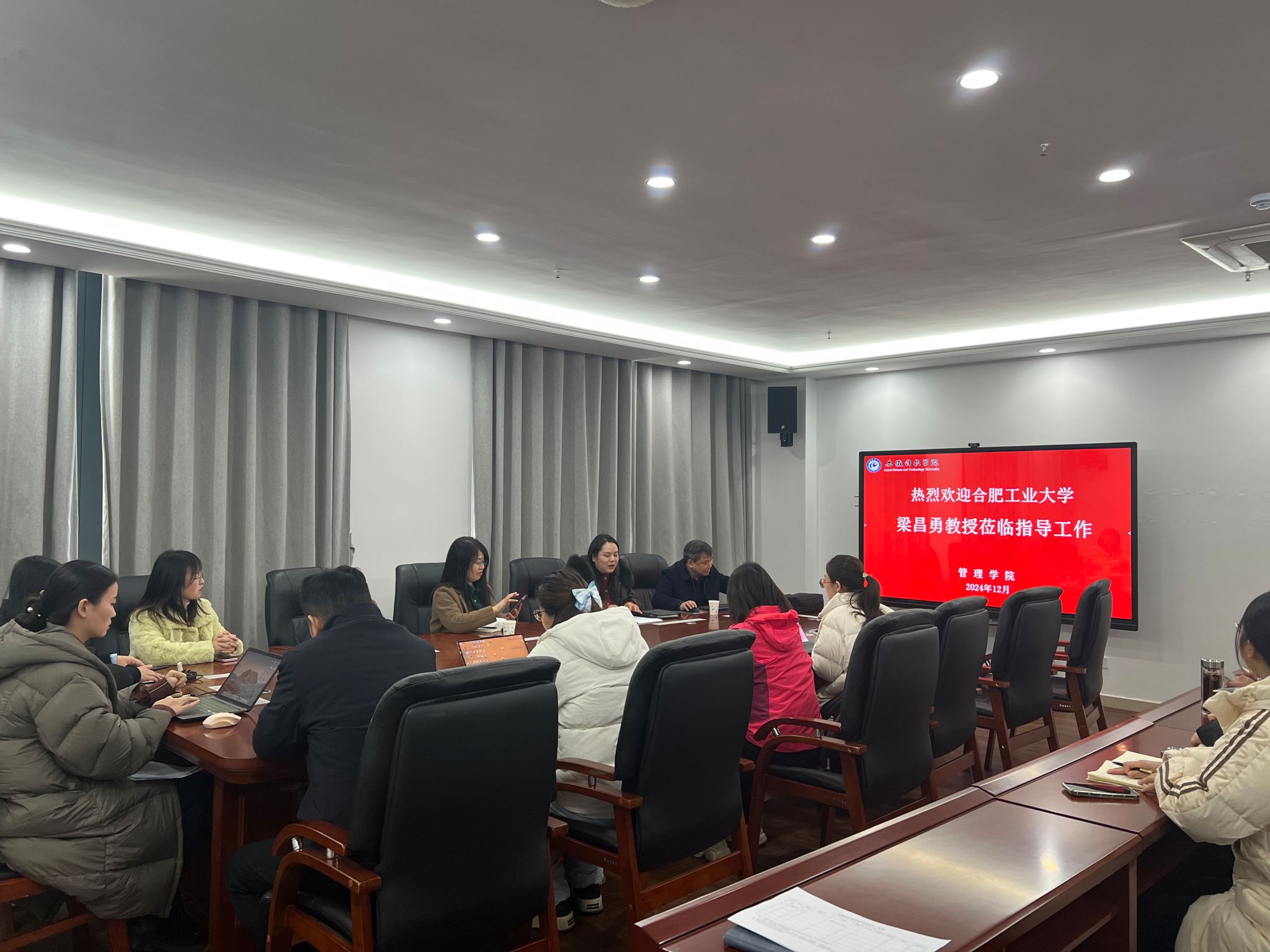 12月27日,国家高层次人才计划入选者、享受国务院特殊津贴专家、合肥工业大学管理学院梁昌勇教授,应我校数字乡村建设与治理安徽省哲学社会科学重点实验室和管理学院的诚挚邀请,开展了“省级哲社重点实验室的建设路径与人才培养”的学术讲座,并就国家级科研项目申报进行了深入而精彩的分享与交流。本次报告会由管理学院副院长郑谦主持。蚌埠学院经济与管理学院副院长陈荣、管理学院师生于西辅楼317会议室参加了报告会。
