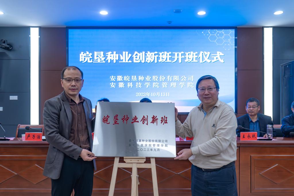 10月13日上午,管理学院与安徽皖垦股份有限公司联合举办的“皖垦种业创新班”在我校龙湖校区正式开班。校党委副书记、院长李震,校教务处处长、创新创业学院院长赵伟峰,农垦集团党委委员、皖垦种业党委书记、董事长陈军,农垦集团党建工作部副部长卢子浩,皖垦种业党委委员、副总经理王永玖,产业管理部部长李昂,党群工作部副部长周德林及管理学院学院党政领导出席了开班仪式。开班式由学院党委书记丁景良主持。