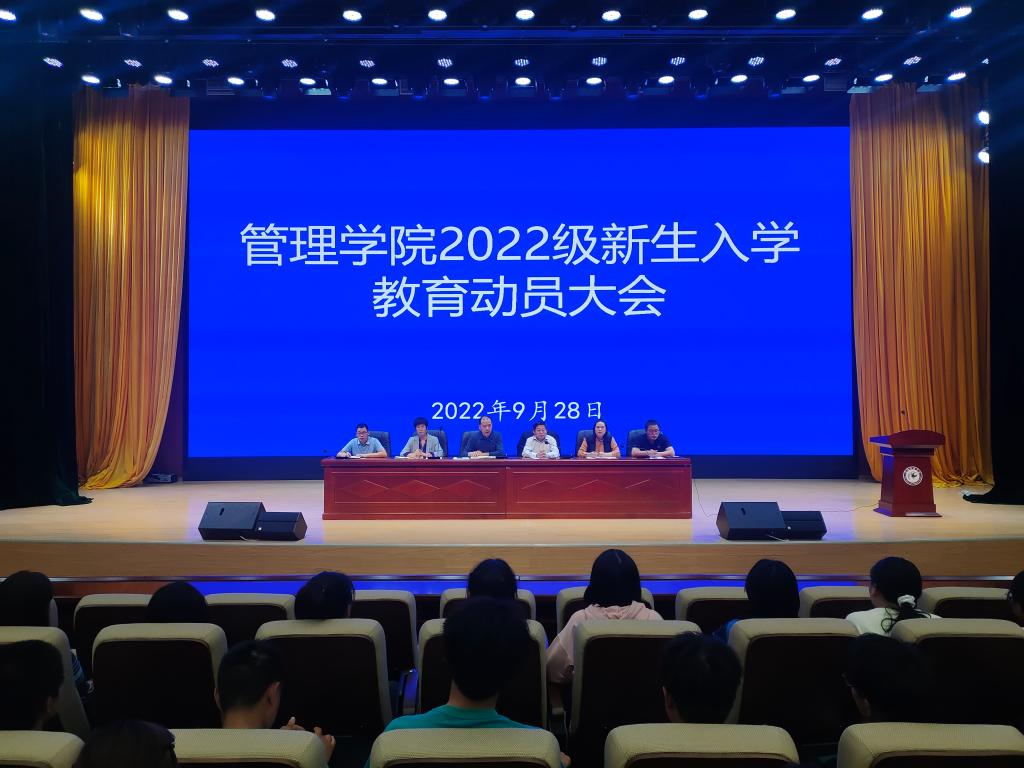 9月28日晚,管理学院2022级新生入学教育动员大会在龙湖校区图书馆东辅楼报告厅举行。学院党政班子成员、教研室主任出席会议。全体新生辅导员以及515名新生参加会议。大会由院党委书记丁景良主持。