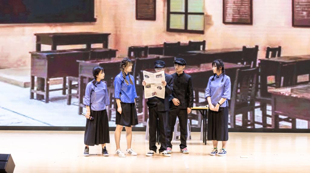 晚会第二篇章,青春飞扬。由历史情景剧《我的1919》和歌曲“最美的太阳,仰望天空,孤勇者”等组成的串烧《明天你好》作开端,时光不老,奋斗不止,少年应励志于千秋伟业,百年恰是风华正茂。丰富的剧情和精彩动人的表演,告诉着我们即使看不清未来,未来也仍然会来到,与其揣揣不安,不如坦然面对,只要勇敢的迈出第一步,微笑着面对每一个明天,终有一日,你会到达梦想彼岸。