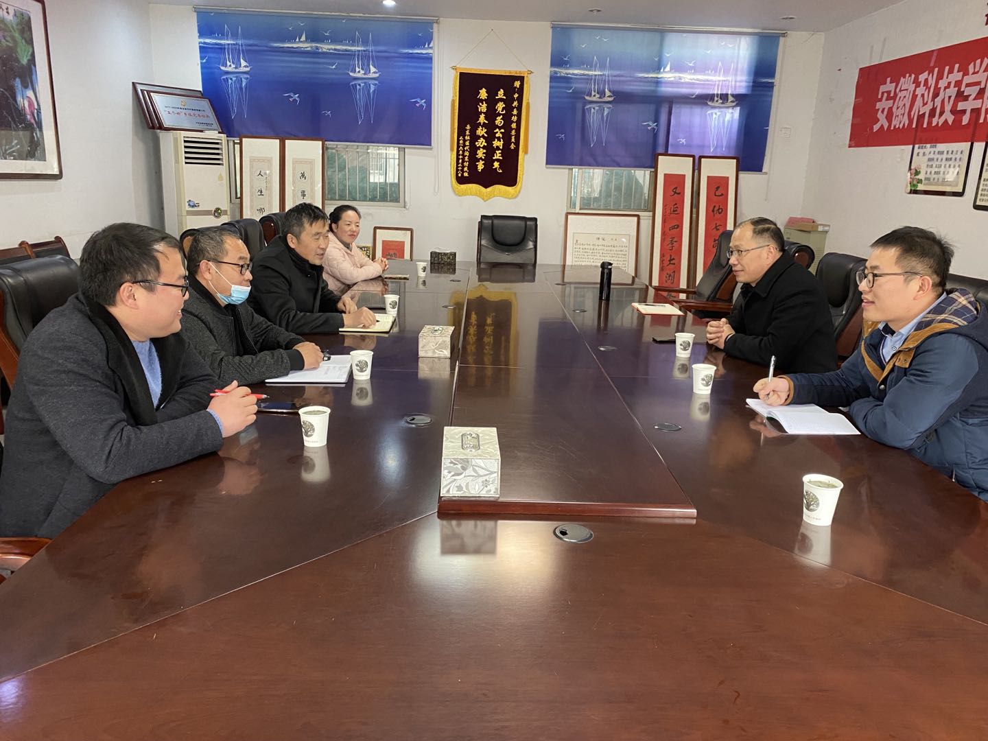 在涡阳县西阳镇和谯城区沙土镇,丁景良一行拜访了两地党委政府主要领导。洽谈中,丁景良简要介绍了学校基本情况,重点介绍了管理学院学科专业、师资队伍、科研及社会服务等情况,表示希望能在乡村治理、产业发展规划和人才培育诸方面加强交流与合作,共同推进乡村全面振兴。西阳镇镇长王伟、沙土镇党委书记闫宏坤介绍了地方乡村振兴推进情况及面临的痛难点,希望利用学校科技及人才的优势在发展规划谋定、特色产业培育、资源整合利用、人才素质提升、优势品牌打造等诸多领域予以帮助和指导。经过商谈,双方就新型职业农民培训、苔干和亳菊产业链升级等领域达成了初步合作意向。