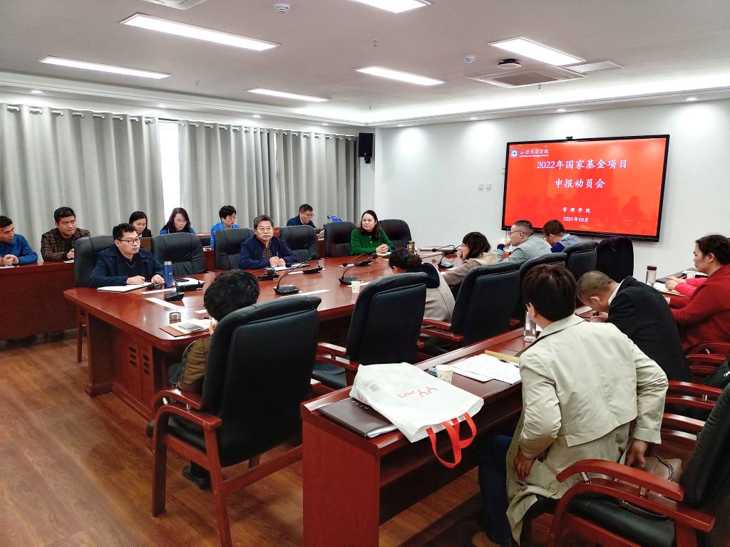 10月27日下午,管理学院2022年国家基金项目申报动员会在龙湖校区西辅楼416会议室举行。管理学院院长陈传万以及所有55周岁以下博士、副高及以上职称教师参加会议,会议由副院长郑谦主持。