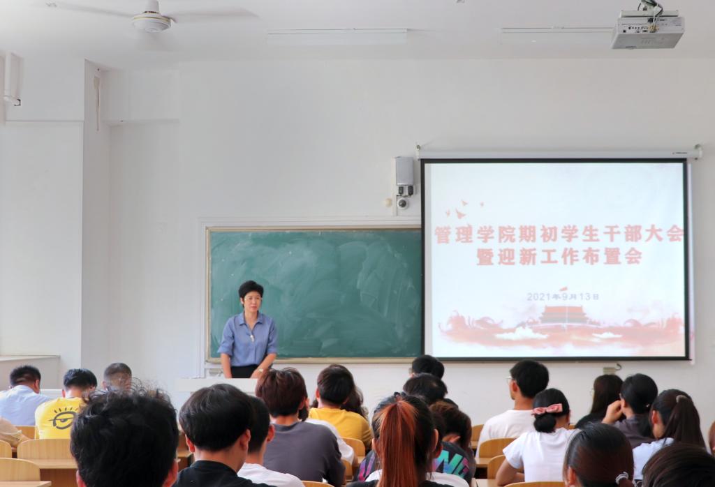为确保2021级迎新工作顺利进行,9月13日中午,管理学院在龙湖校区致知楼C109召开期初学生干部大会,就即将到来的本科生迎新工作进行专题布置。院党委副书记陶漫出席会议并讲话,会议由学院党政办主任李永鹏主持。