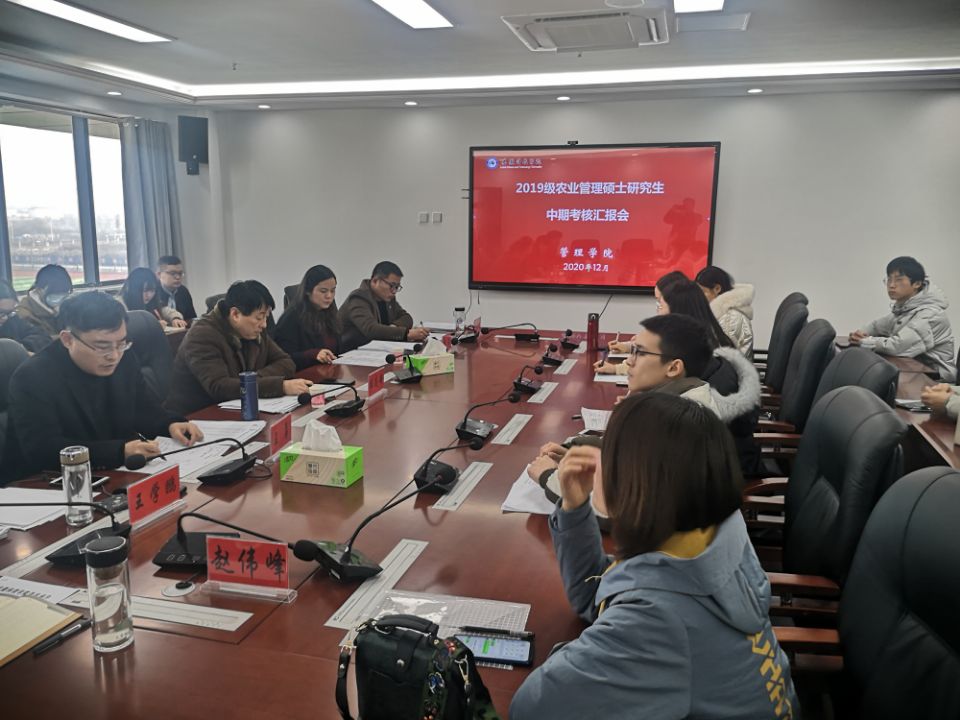 为促进研究生德智体全面发展,确保专业学位研究生培养质量,根据学校研究生处工作安排,管理学院于12月28日上午在龙湖校区综合楼西辅楼416会议室组织召开了2019级研究生中期考核汇报会。安徽财经大学任志安教授担任考核组组长,财经学院王勇副教授、管理学院郑谦副教授、王学鹏副教授、刘宗飞副教授担任考核组成员,考核汇报会由管理学院院长赵伟峰主持。
