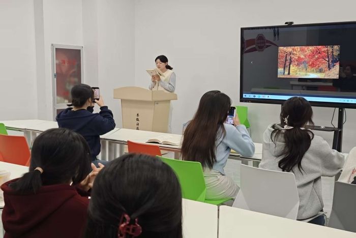 分享环节,财务管理231班刘可心等五名学生代表分享了《故都的秋》等著作的阅读感悟,深情讲述书籍背后的时代内涵、家国情怀和精神力量,引发深度思考,激发读者的爱国热情,引导青年学生在感悟经典中汲取奋进力量。