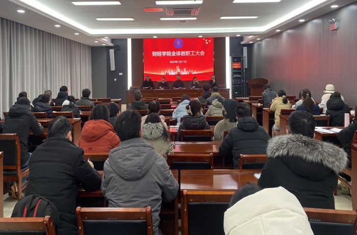 1月17日下午,财经学院在龙湖校区西辅楼111会议室召开全体教职工会议。学院领导班子成员和全体教职工参加会议,会议由党委副书记、纪委书记耿广汉主持。