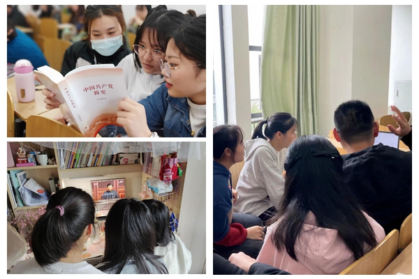 读书班上,各班级学生在辅导员的带领下,通过集中学习、自主学习、专题研讨、视频观摩、撰写心得体会等形式,围绕习近平《论中国共产党历史》《中国共产党简史》等内容,和“学习强国“及易班等新媒体平台推动的学习资源,深入开展“党史学习教育专题读书班”系列活动,保证党史学习教育全覆盖。