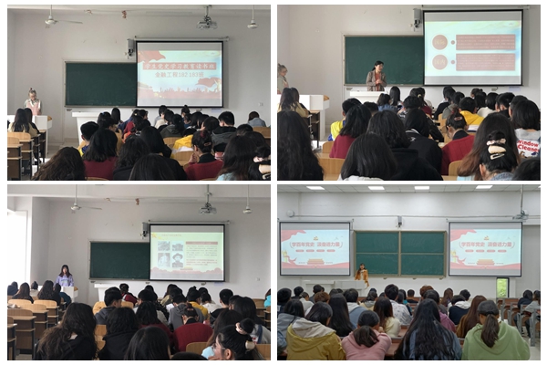 为推进党史学习教育高标准、高质量、全覆盖,引导青年学生厚植爱党、爱国、爱社会主义的情怀,掀起党史学习教育的热潮,按照学校《关于组织做好党史学习教育读书班的通知》(学函〔2021〕14号)精神,财经学院于4月1日至4月30日在各班级组织开展了党史学习教育读书班专题活动,引导学生重温百年党史,坚定理想信念,不断汲取奋进力量。