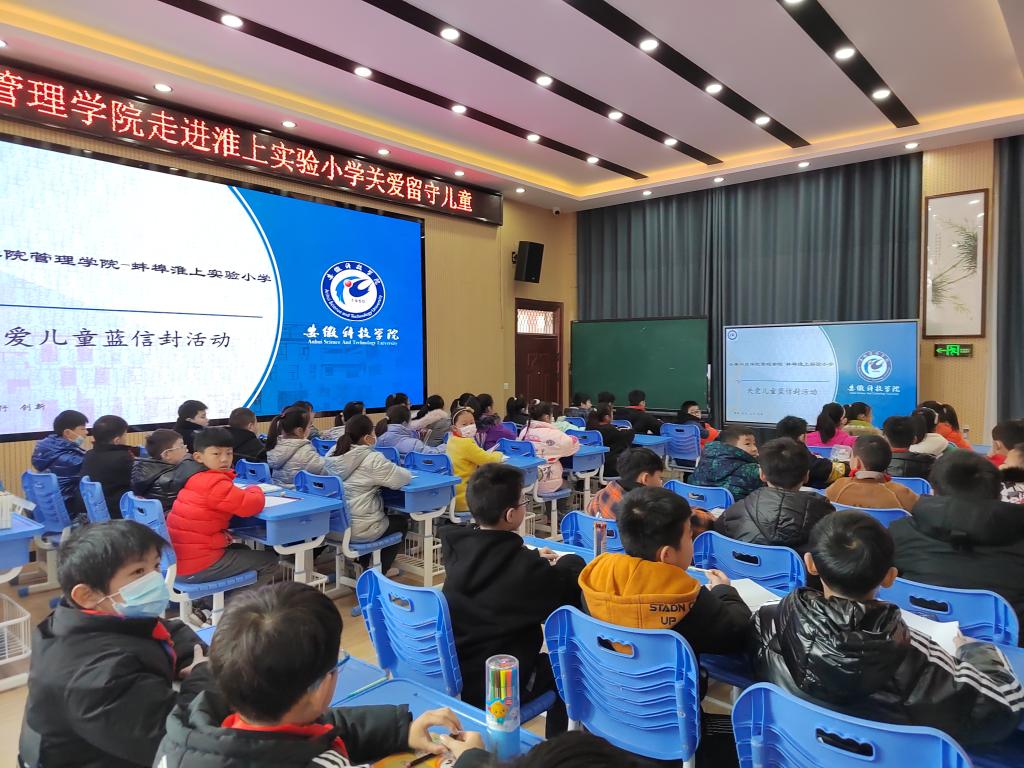 为积极践行志愿服务精神,展现安科研究生良好精神风貌,同时更好关注留守儿童的健康成长,丰富留守儿童的校园文化生活,应蚌埠市淮上实验小学邀请,管理学院根据其需求有针对性地制定了关爱留守儿童“蓝信封”活动实施方案。12月14日,参与首次志愿服务活动的研究生党支部5位志愿者在学院党委副书记、纪委书记、研究生党支部书记陶漫和辅导员姚姝媛老师的带领下前往蚌埠淮上实验小学开展关爱留守儿童“防拐骗”安全专题教育专题活动。活动由农业管理领域2021级研究生刘雅南主讲。