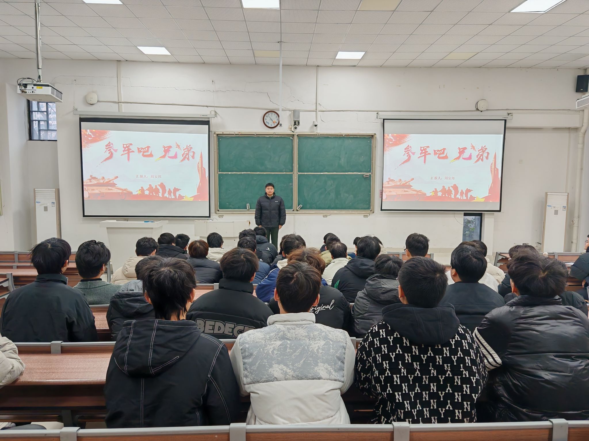 专题宣讲榜样引领,点燃从军报国激情。12月17日,学院在致知楼C111举办专题宣讲会,2023级部分同学参加,退役学生代表周安邦分享服役期间参与边境巡逻的真实经历。“在零下30度的边境线上巡逻时,是肩上的责任让我不断前行”,质朴的讲述让在场学生深受触动。应征入伍联系人王天云老师系统解读了2026年应征入伍政策,重点就体检标准、政审要求、经济补助等问题进行详细说明,并现场演示全国应征入伍网报名流程,为学生提供“一站式”指导服务。
