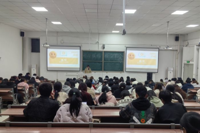 尹成超围绕听力、阅读、翻译与写作等四六级考试重点模块展开讲解。他结合历年真题,系统分析了各类题型的备考要点与常见易错点,为同学们提供了有针对性的复习指导。刘婷等同学强调了构建知识结构与把握答题节奏的重要性,鼓励大家科学备考、从容应考。