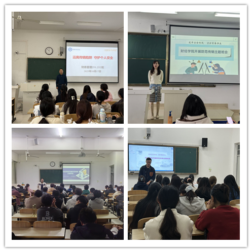 学院采用线上线下相结合的方式开展本次防范传销宣传活动。线下,各班级组织召开主题班会,辅导员以真实案例为切入点,深入剖析传销组织运作模式与常见套路,通过播放反传销警示教育片还原网络投资返利、兼职刷单骗局、高薪招聘陷阱等典型场景,并设置“传销套路大家辨”互动环节,引导同学们分组讨论身边潜在传销风险,总结“不轻信陌生邀约、不透露个人信息、不参与非法集资”的“三不原则”;线上,学院充分利用易班网络平台,发布“防范传销”轻应用,推送相关图文及互动内容,吸引学生积极参与,共同营造“人人识传销、人人反传销”的校园共识。