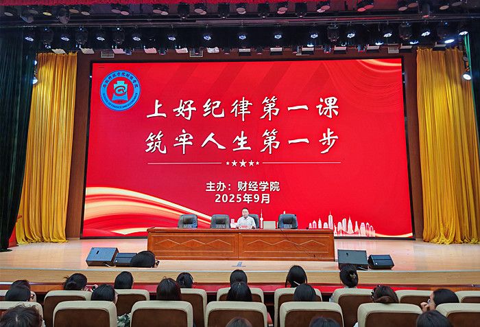为引导学生树立规矩意识,帮助新生系好大学生活的“第一粒扣子”,9月11日晚财经学院在龙湖校区东辅楼报告厅开展主题为“上好纪律第一课,筑牢人生第一步”的校规校纪集中教育会。学院党委副书记、纪委书记耿广汉主讲,辅导员和2025级新生参加。