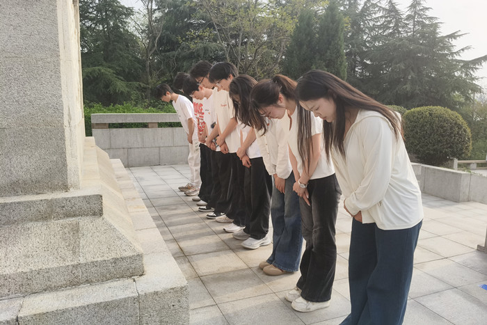 4月9日下午,财经学院组织学生党支部党员、院“青马工程”学员、各班级纪律委员前往蚌埠市烈士陵园开展祭扫活动。学院团委书记薛枫带队指导。
