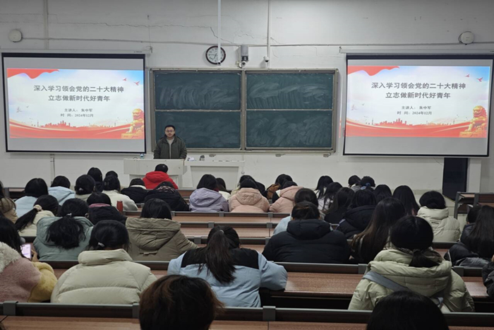 为深入学习贯彻党的二十大精神, 引导广大团员青年坚定听党话跟党走,12月14日,财经学院举办“学习领会党的二十大精神,立志做新时代好青年”主题团课活动。本次团课由财经学院专职辅导员朱中军担任主讲。2024年院“青马工程”全体学员及学生会干部参加。