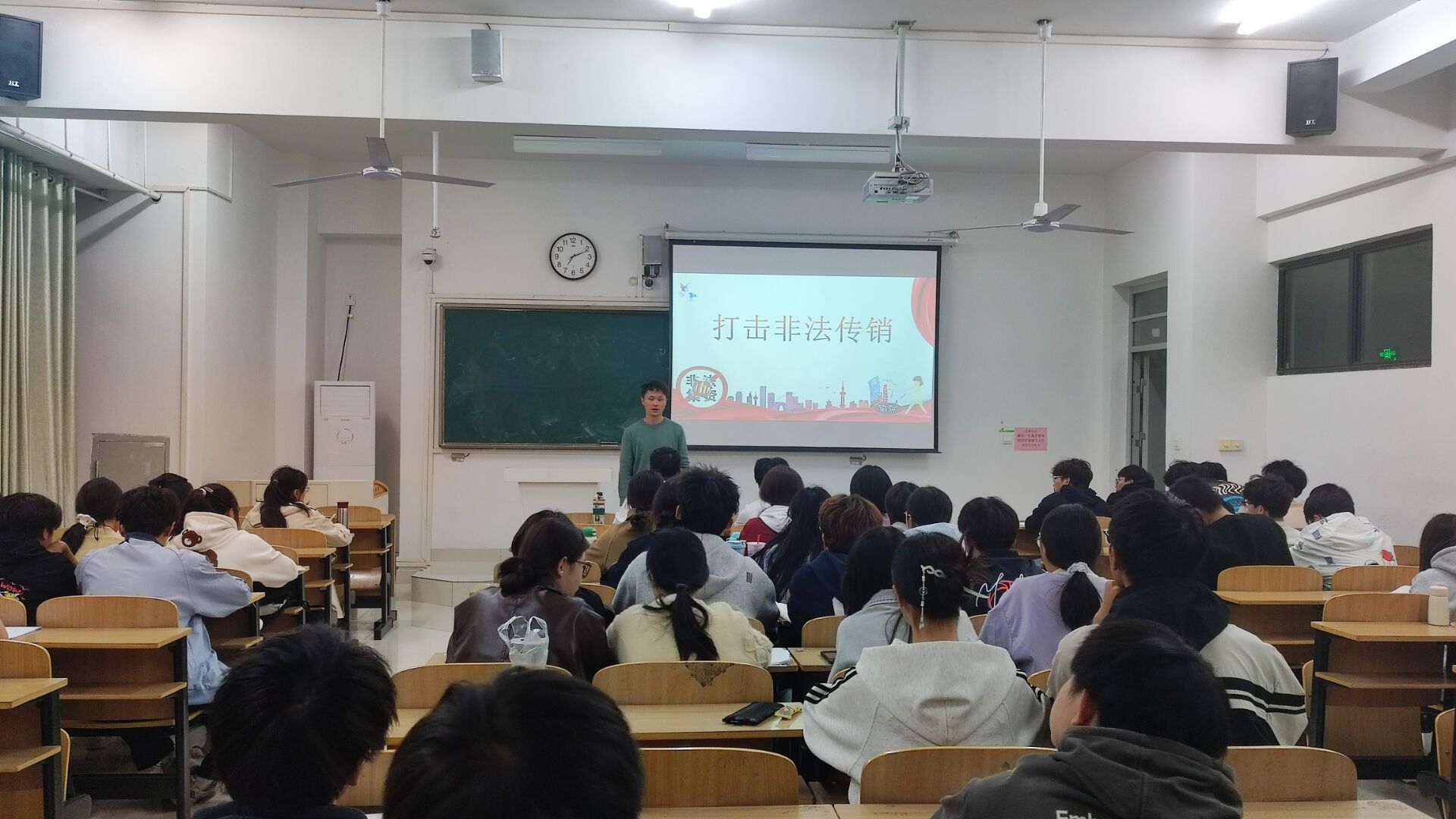 班会全覆盖,防范传销我先行。各班级辅导员围绕传销类型、传销模式、典型案例、防范方法等内容展开阐述,并采用观看反传销宣传视频、传销案例分析讨论等形式来增强同学们对新型传销的认识,希望同学们拒绝传销,争做智慧青年,严于律己,敢于斗争,不给传销留下生存余地。