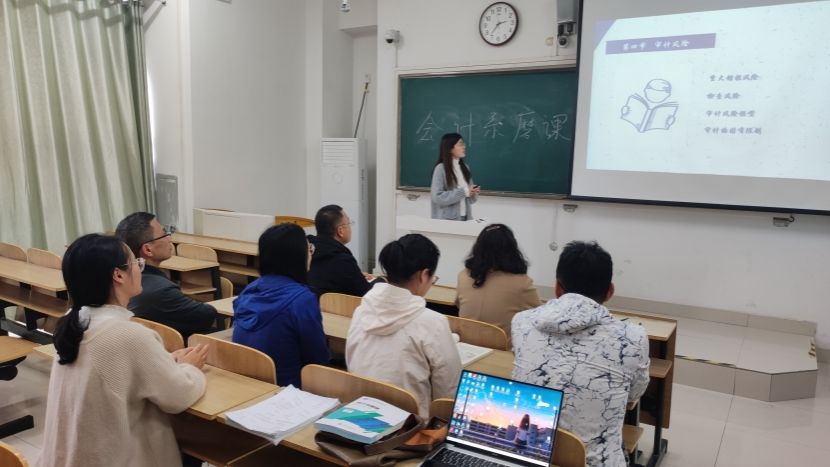 磨课活动包括讲课与说课两个环节,青年教师们分别就自己所教授的课程进行了现场展示。张冕老师展示的课程为《审计学》,她结合具体案例生动地讲授了重大错报风险内涵;冯晓伟老师展示的课程为《基础会计》,她选取了第四章借贷记账法的应用中的企业筹集资金核算部分进行了讲解;吴德永老师所展示的课程为《中级财务会计》,他运用流程图及案例的方式深入简出地讲授了较为晦涩难懂的计划成本法核算及应用;卢蝶老师所展示的课程为《会计学》,她运用线上线下相结合的教学方式讲授了材料采购中成本如何确定以及经济业务的处理。