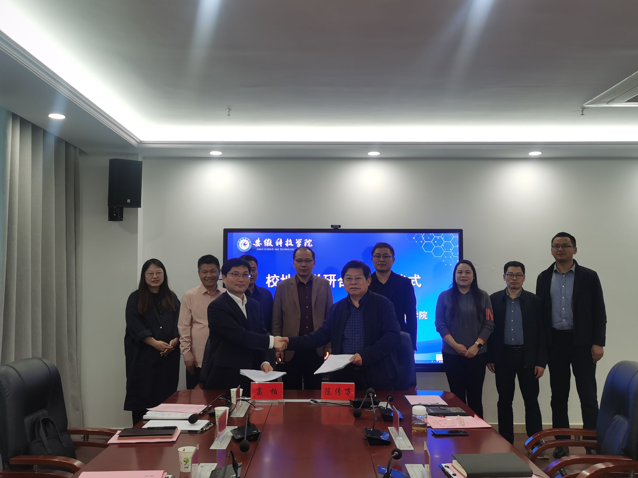 为进一步推动校地融合发展,精准对接我校科技、人才与地方经济发展之间需求度,推动校地产学研用深度融合,4月19日,长丰县左店镇党委书记葛柏,党委副书记杜峰,党委委员、宣传委员郭越,党委委员、武装部长刘海涛,党政办主任吴建华,左店社区党总支书记代宗恒一行六人应管理学院邀请,来校洽谈校地合作事宜,校科研处副处长刘宗飞,管理学院党委书记丁景良、院长陈传万、副院长郑谦、副院长张国宝,安徽科技学院服务地方发展研究院院长余海兵教授出席签约仪式,仪式由丁景良主持。