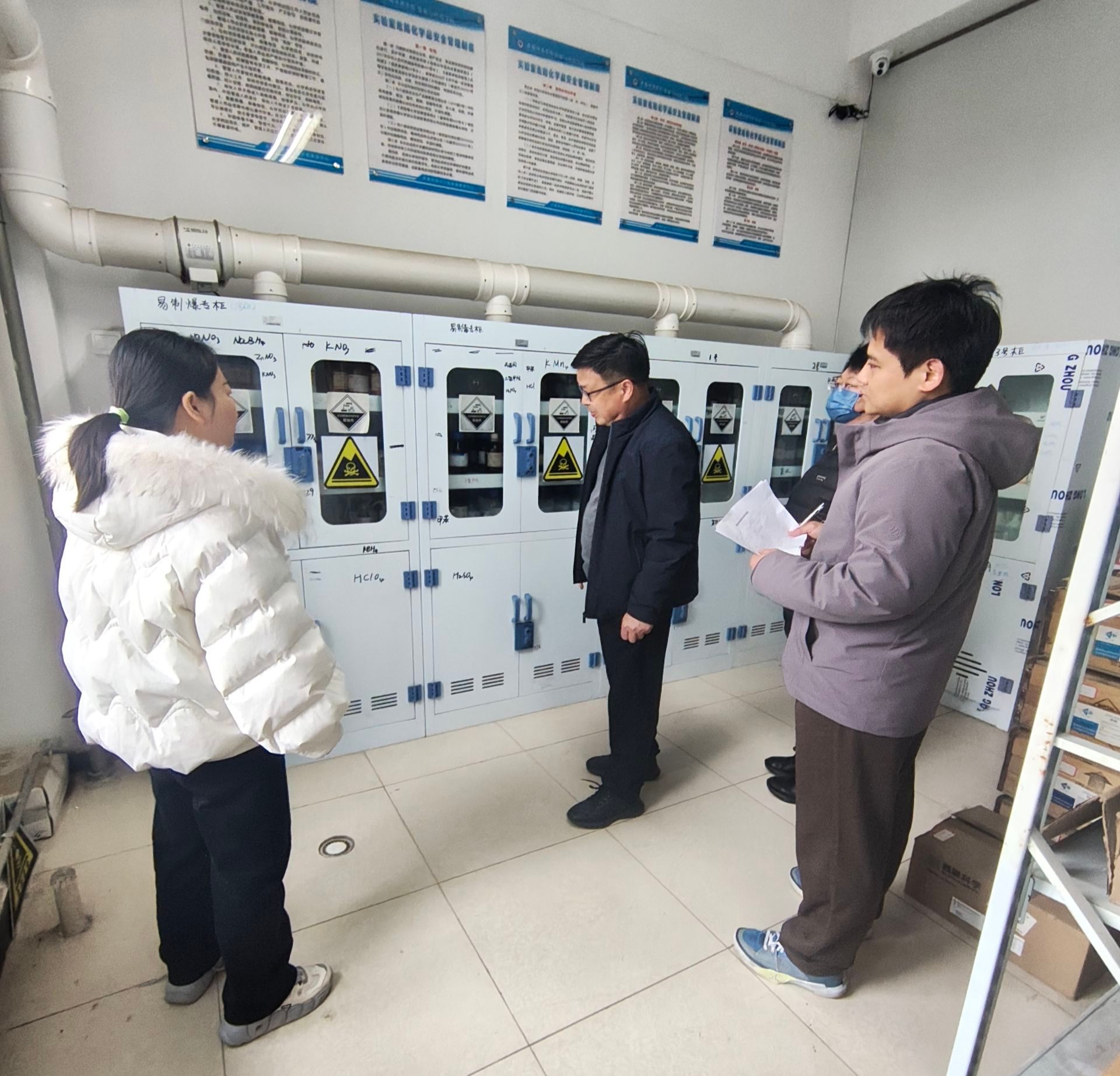 为贯彻落实学校实验室安全管理工作部署,全面排查安全隐患,确保新学期实践教学工作顺利开展,2月28日,学校组织开展了2025-2026学年第二学期期初实践教学条件保障及实验室安全专项检查。教务处副处长舒英杰和张杰带队,校实验室安全督导员与教务处相关人员组成检查组,分三组同步对凤阳校区、龙湖校区和滁州校区展开全覆盖、无死角专项排查,扎实筑牢校园实践教学安全屏障。