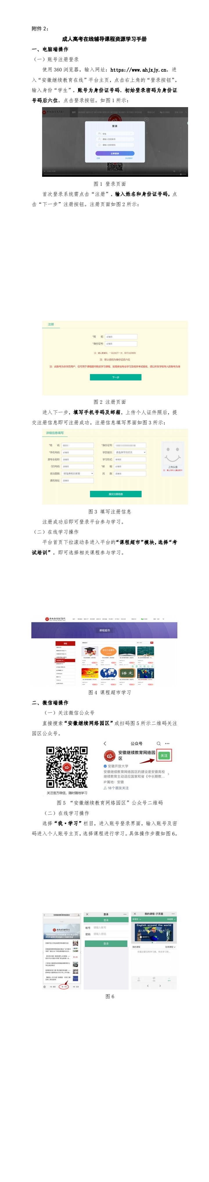 为促进高等教育均衡化发展,满足广大成人高考学生追求高学历、实现自我价值的需求,扎实推进“我为师生办实事”活动,安徽继续教育网络园区现面向社会免费开放成人高考在线辅导课程(课程目录见附件1),现将有关事项通知如下: